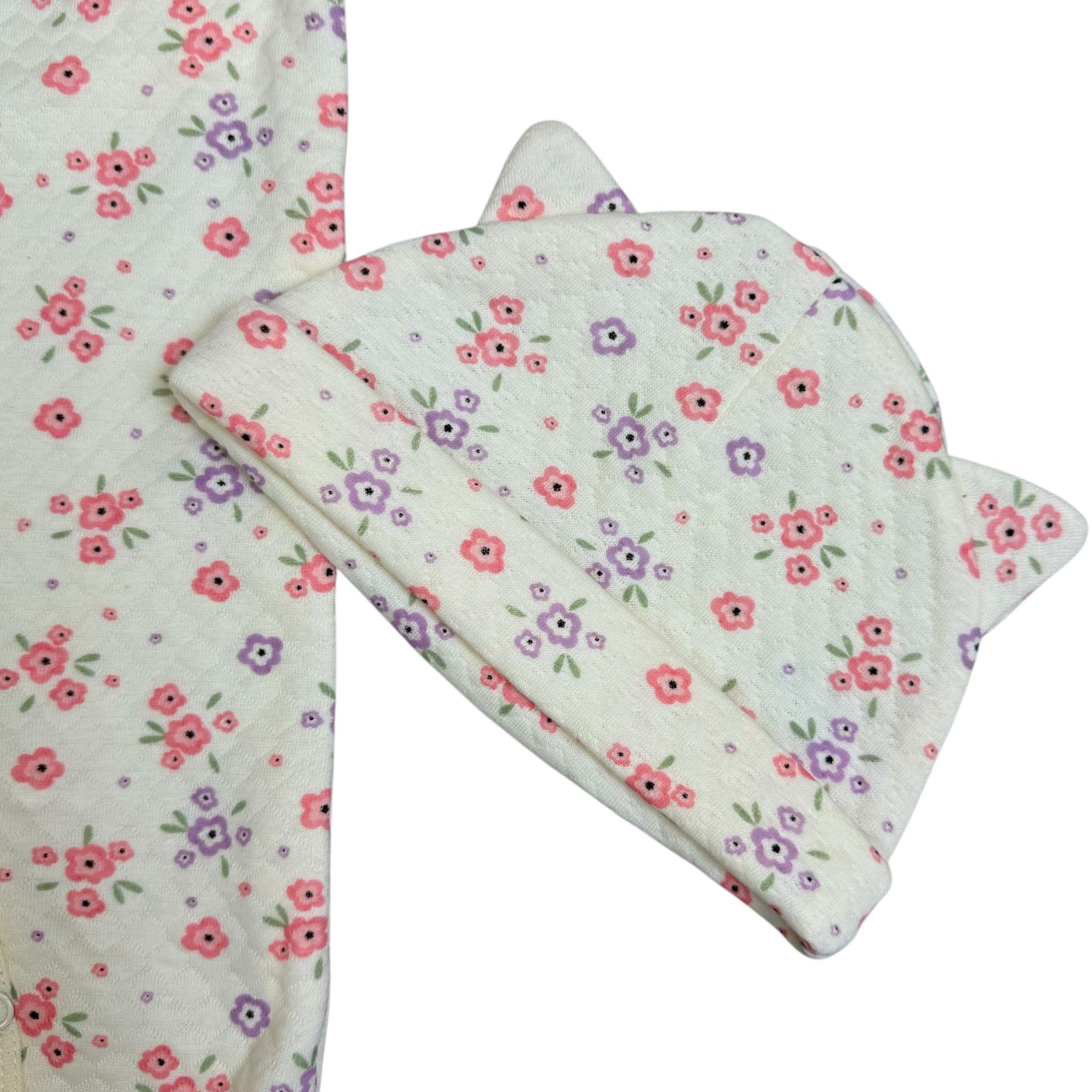 🌸 Baby Footed Pajamas with Hat – Floral Print (2-Piece Set)
