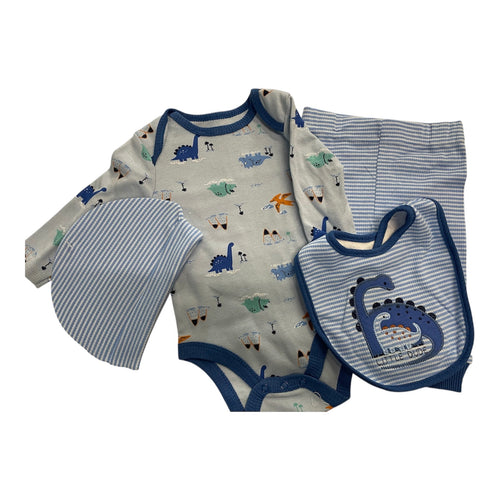 Baby Boy 4-Piece Outfit Set – Dinosaur Bodysuit, Pants, Hat & Bib