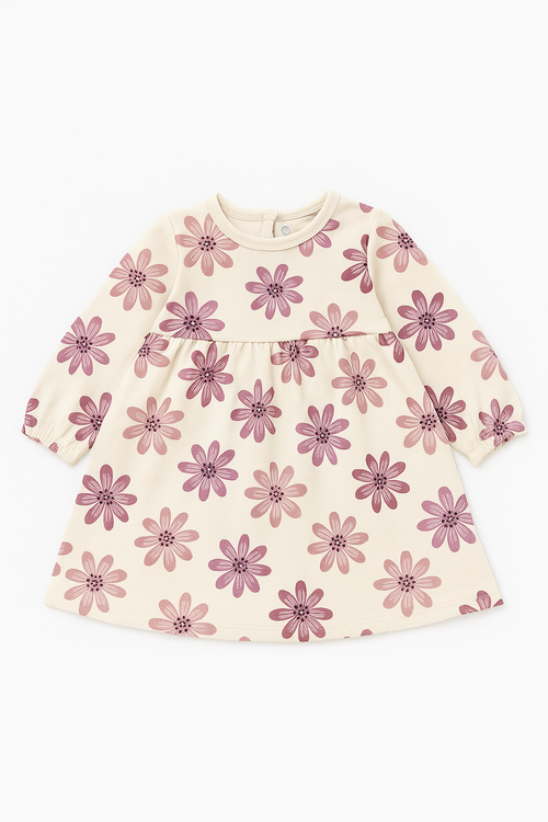 Baby Girl 3-Piece Dress Set – Long Sleeve Floral Dress + Diaper Cover + Headband