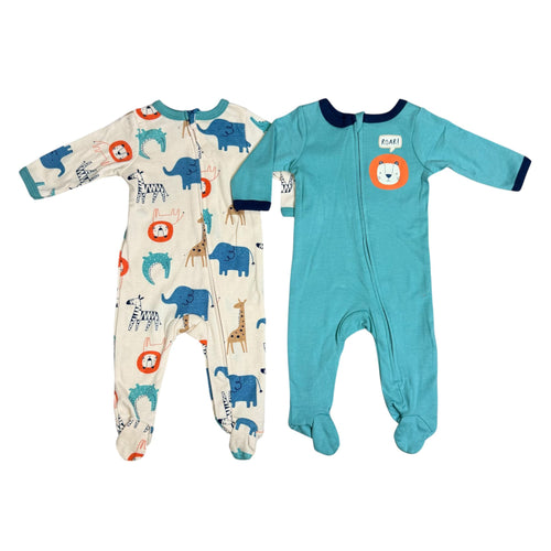 Baby Boys 2-Pack Footed Sleepers – Safari Animals & Lion “Roar!” Theme