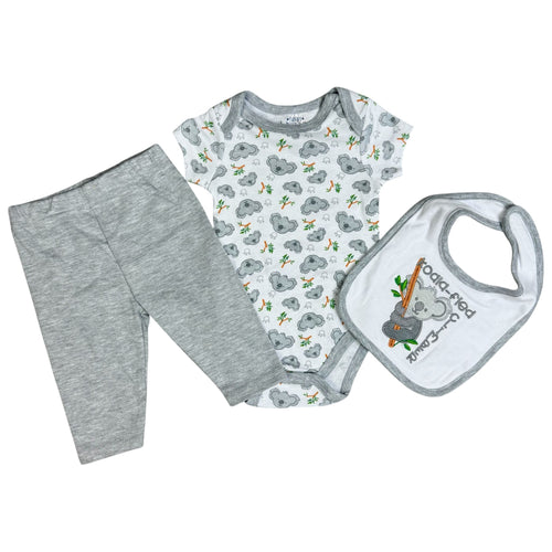 Baby Boy 3-Piece Koala Outfit | Bodysuit, Pants & Bib – Funny Bunny