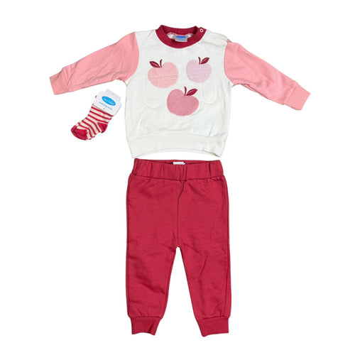 3-Piece Baby Girl Outfit Set – Apple Sweatshirt, Pants & Matching Socks – Soft Cotton