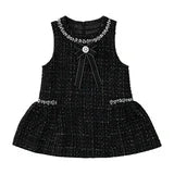 Luxury Girls Black Tweed Dress with Pearls