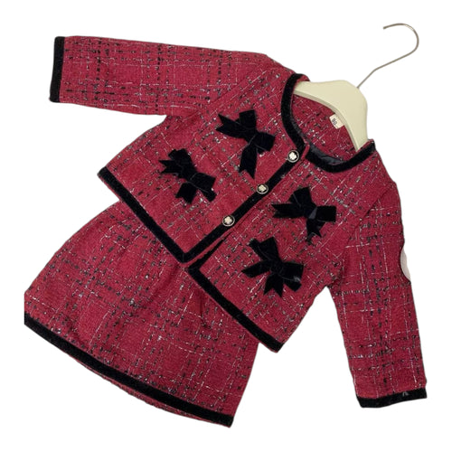 Luxury Girls Red Tweed Suit Set – Blazer & Skirt – Holiday / Party Outfit