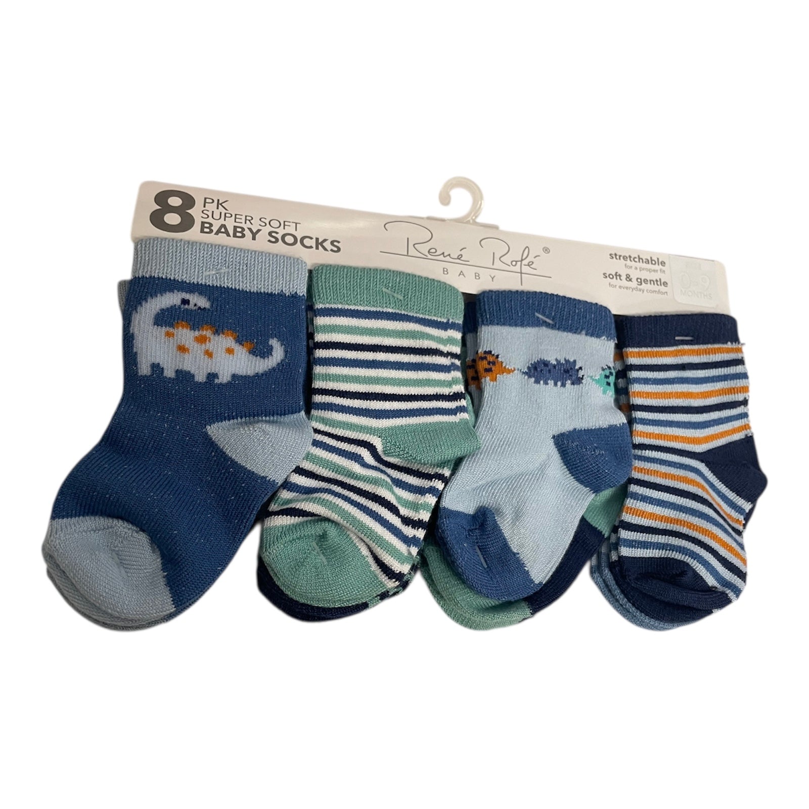 🦕 René Rofé Baby Socks Set – 8 Pairs Super Soft for Boys (0–9 Months)