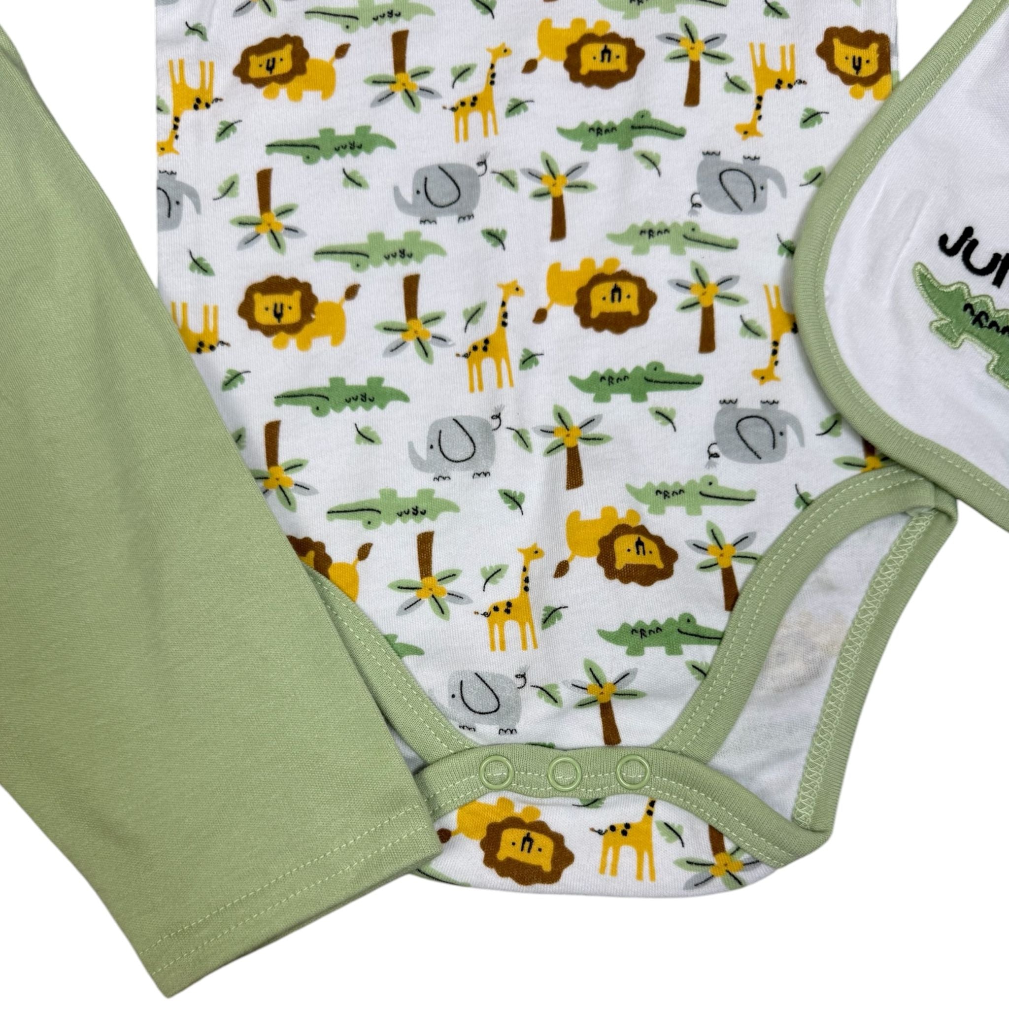 π Baby Boys 3-Piece Outfit Set β Jungle Animals β Bodysuit, Pants & Bib π¦ππ¦