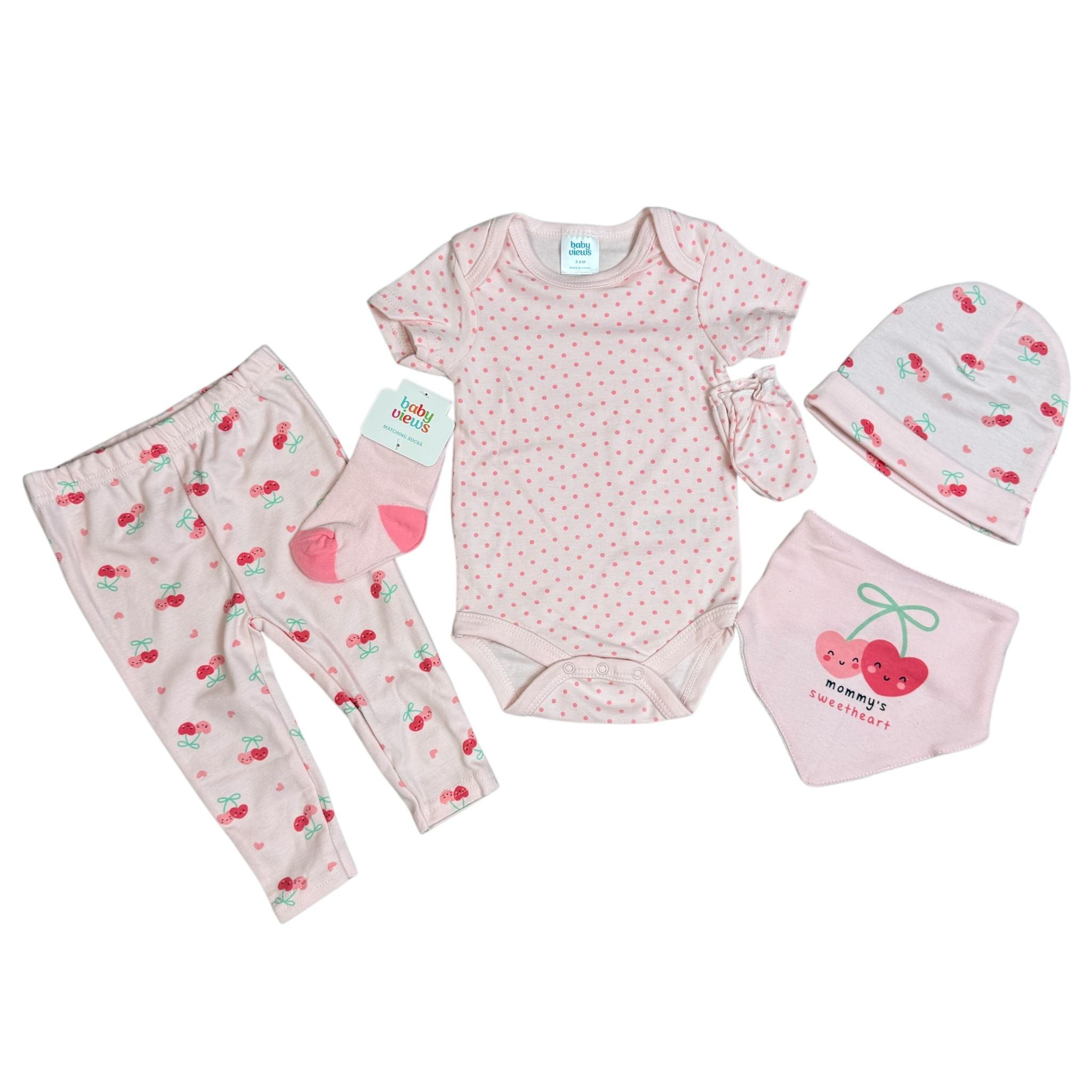 Baby Girl 8-Piece Clothing Set – Cherry Print – Baby Delius – 100% Cotton