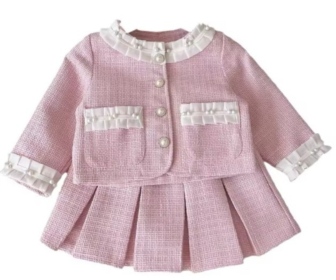 Your little princess will look absolutely adorable in this elegant tweed outfit set! Perfect for stylish moments and special occasions ππ