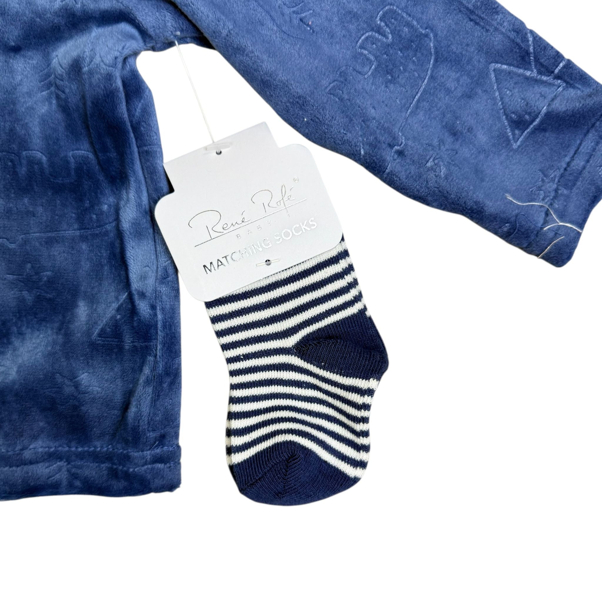 👶 René Rofé Baby – 3-Piece Set | Long Sleeve Velour Outfit + Matching Socks (Navy Blue)